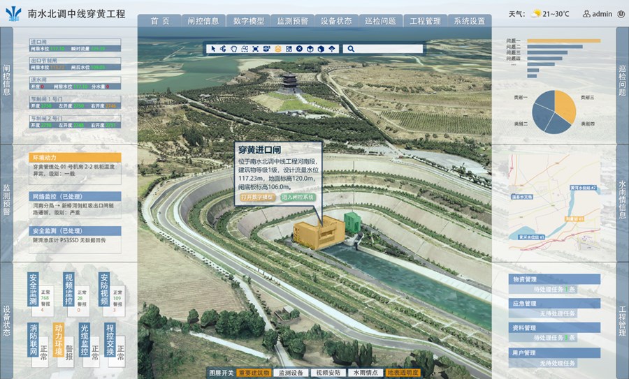 惠南庄泵站、穿黄工程运维管理系����� �������Ƴ������������ �������Ƴ������������ �������Ƴ������������ �������Ƴ������统(实现基于BIM模型和实景模型的监测监控设备����� �������Ƴ������������ �������Ƴ������������ �������Ƴ������������ �������Ƴ�������状态信息实时查询,实现工程的运维管理)
