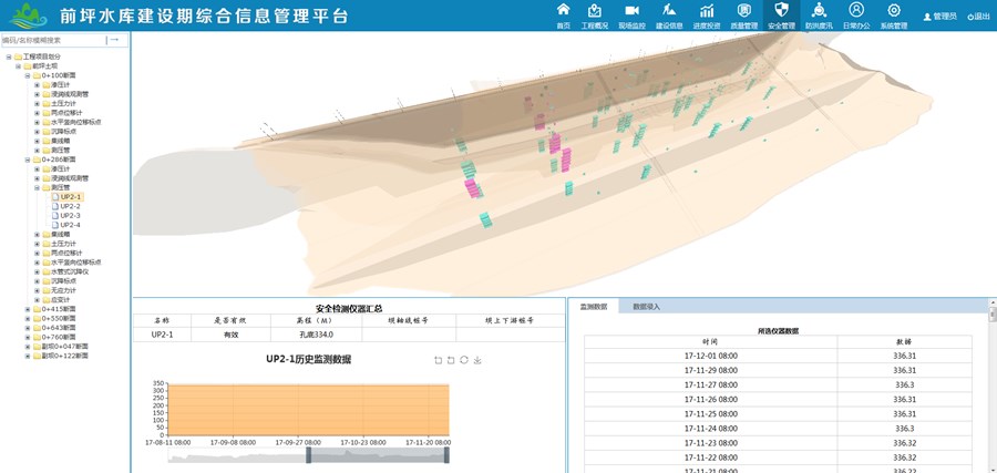 前坪水库工程(基于BIM模型搭建建设期管理系统����� �������Ƴ������������ �������Ƴ������������ �������Ƴ������������ �������Ƴ�������,实现大坝安全监测信息实时查询����� �������Ƴ������������ �������Ƴ������������ �������Ƴ������������ �������Ƴ�������与管理。)
