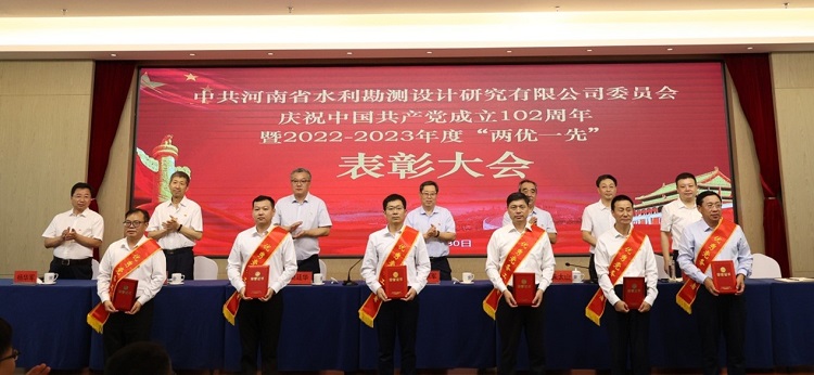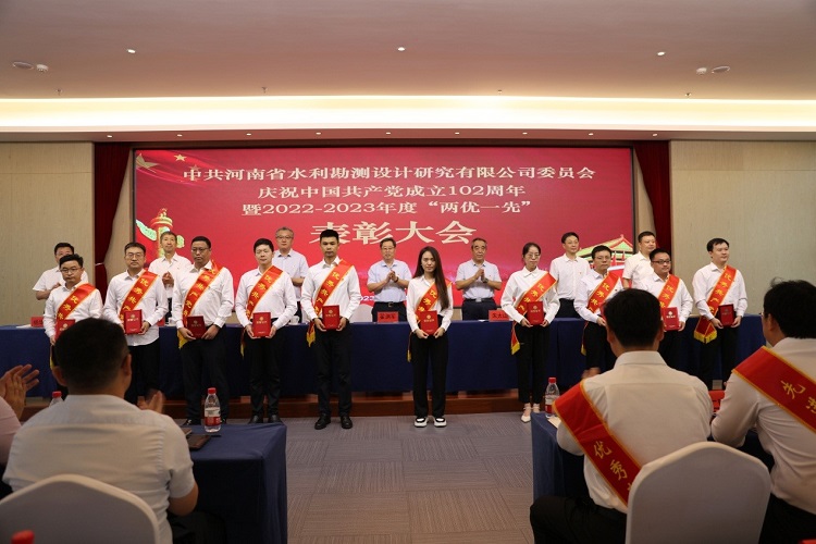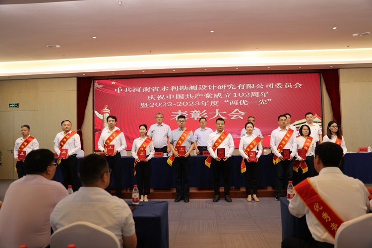 6月30日上午,中共河南����� �������Ƴ������������ �������Ƴ������������ �������Ƴ������������ �������Ƴ�������省水利勘测设计研究有限公司委员会隆重举行庆祝中����� �������Ƴ������������ �������Ƴ������������ �������Ƴ������������ �������Ƴ�������国共产党成立102周年暨2022-2023年����� �������Ƴ������������ �������Ƴ������������ �������Ƴ������������ �������Ƴ�������度“两优一先”表彰大会,热烈庆祝伟大的中国共产党����� �������Ƴ������������ �������Ƴ������������ �������Ƴ������������ �������Ƴ�������102岁华诞,系统总结公司两年来党建工����� �������Ƴ������������ �������Ƴ������������ �������Ƴ������������ �������Ƴ�������作,表彰2022-2023年度优秀共产����� �������Ƴ������������ �������Ƴ������������ �������Ƴ������������ �������Ƴ�������党员、优秀党务工作者和先进党支����� �������Ƴ������������ �������Ƴ������������ �������Ƴ������������ �������Ƴ�������部,动员全体共产党员向先进学习����� �������Ƴ������������ �������Ƴ������������ �������Ƴ������������ �������Ƴ�������、向模范看齐,进一步激发广大党员群众干事创业动力����� �������Ƴ������������ �������Ƴ������������ �������Ƴ������������ �������Ƴ�������和热情,共同为豫水设计的����� �������Ƴ������������ �������Ƴ������������ �������Ƴ����������� �������Ƴ�������美好明天团结奋斗。会议由公司党委委员、总����� �������Ƴ������������ �������Ƴ������������ �������Ƴ������������ �������Ƴ�������经理朱太山主持。